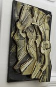 Bernette Rudolph laminates reproductions of famous paintings and adheres them to Birch wood lifting images off the surface with her band saw.